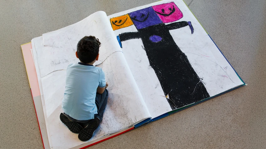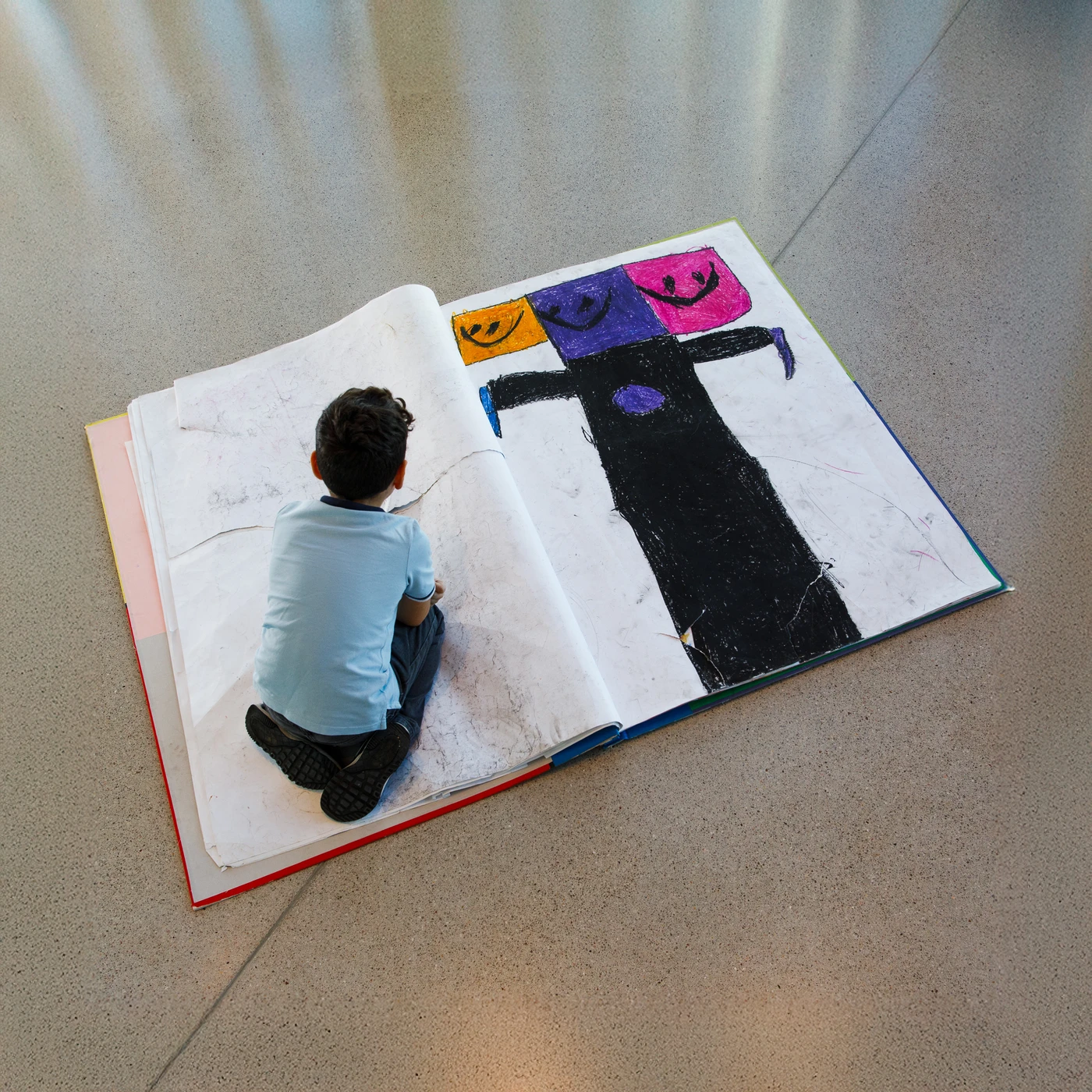 Durch das runde Fenster in der Decke der Bibliothek sehen wir in den Himmel, von den Wänden her schauen uns Bücher an, im zweiten Fenster an der Seite zeigen sich die Hausdächer der Stadt. Wer (Vor-)lesen und Geschichten liebt oder selbst gern erzählt, ist hier richtig. Helga Fuhs und Alois Stöckl sind ehrenamtliche Mitarbeiter:innen im KinderKunstLabor. Sie lesen abwechselnd aus verschiedenen Kinder- und Jugendbüchern vor – entlang unserer Themen Kunst, Träume, Räume und Sprachen.